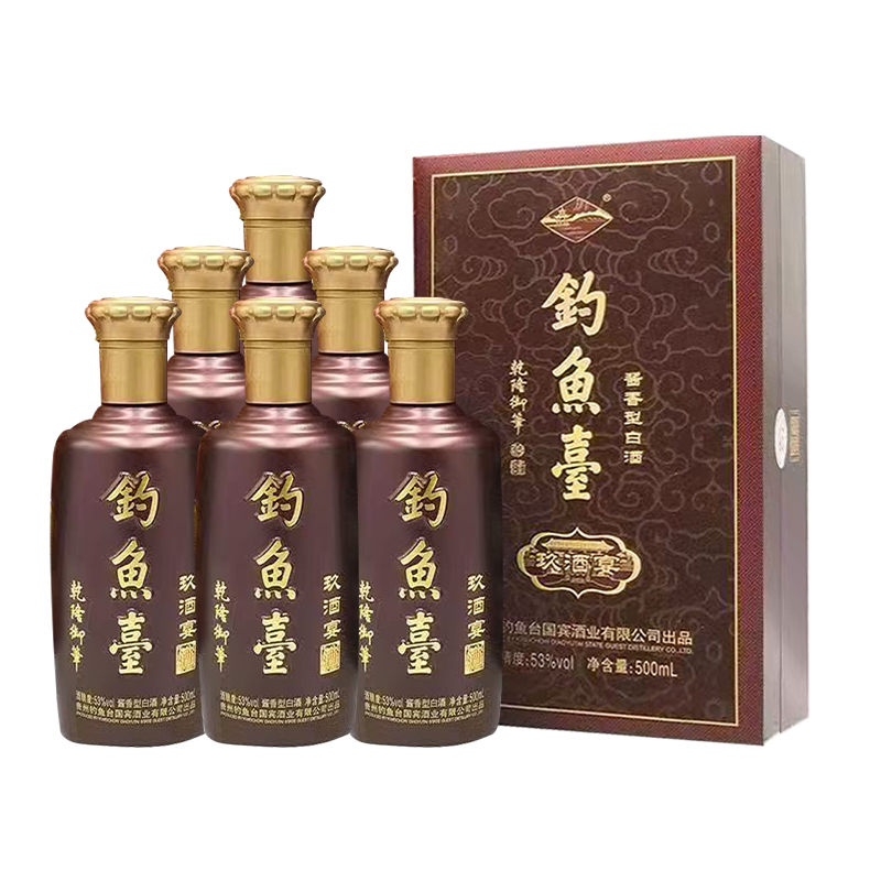 贵州茅台镇 钓鱼台 玖酒宴 53度 酱香型白酒 节日礼盒送礼酒水收藏粮食酒 500ml*6瓶 整箱